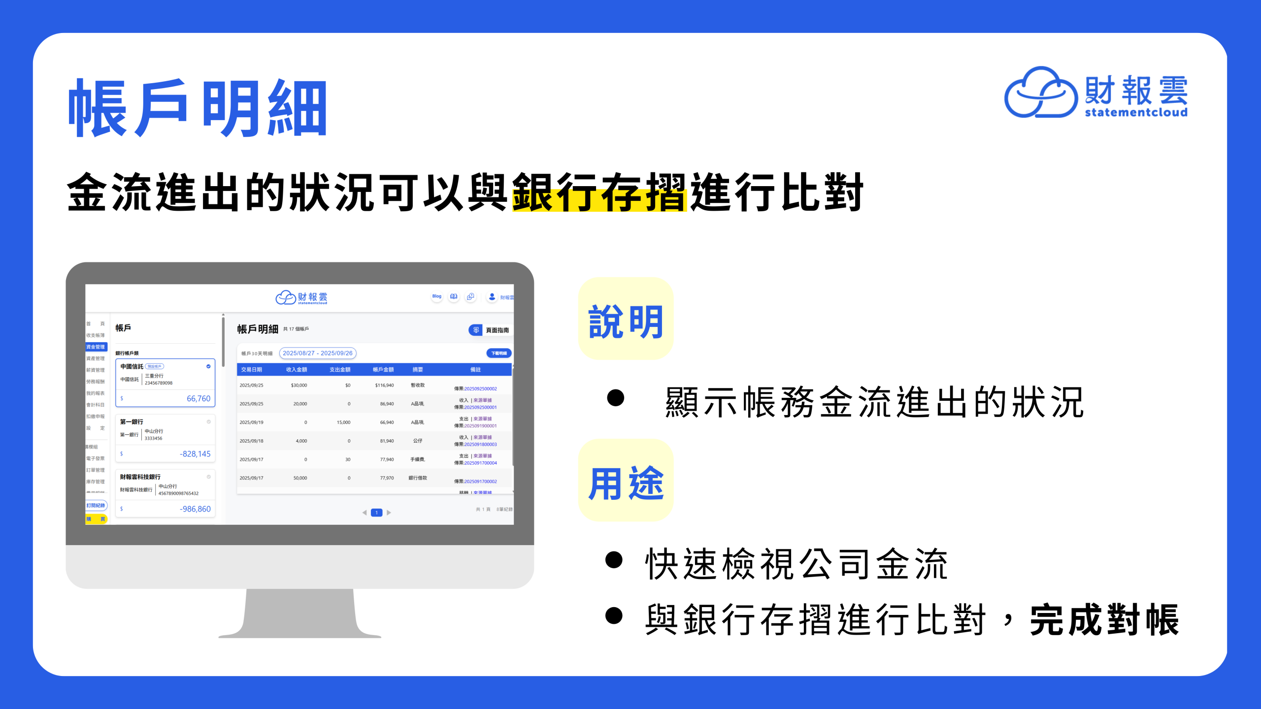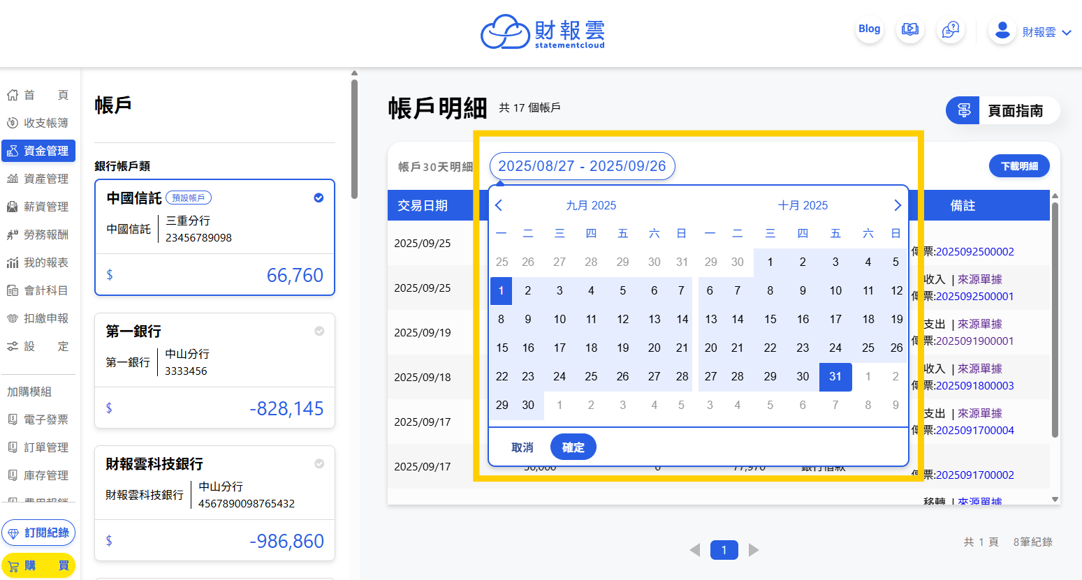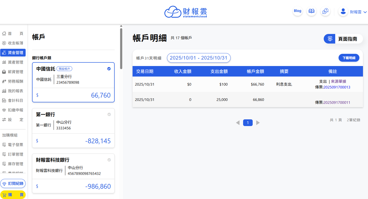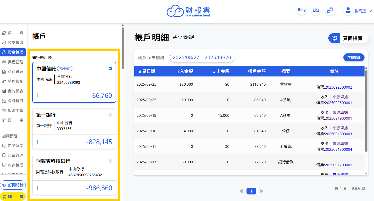 財報雲的「帳戶明細」可以用來查看金流進出的狀況。