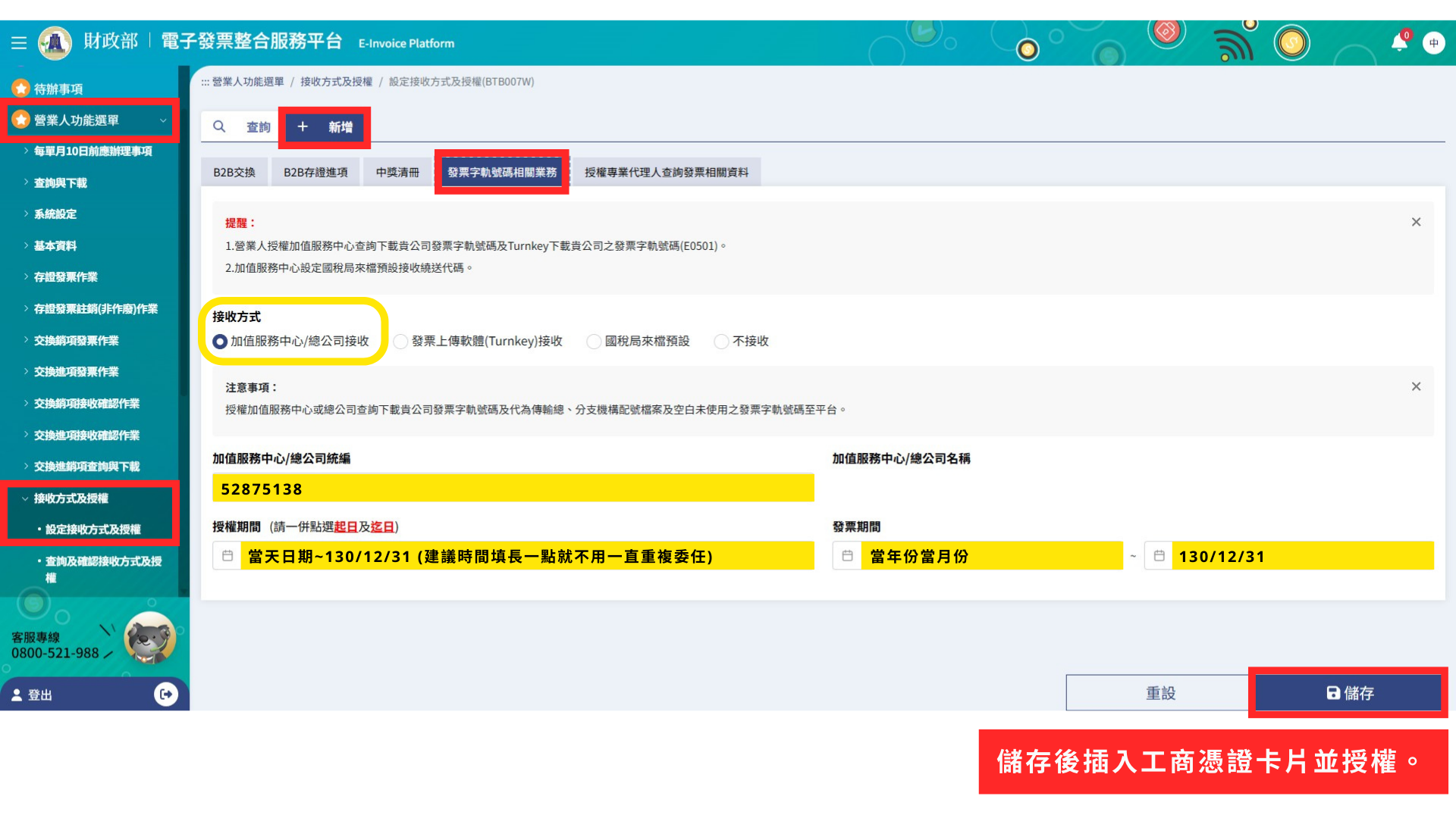 📢 提醒您:完成取號/授權後,請通知財報雲客服,以協助開通電子發票功能。
