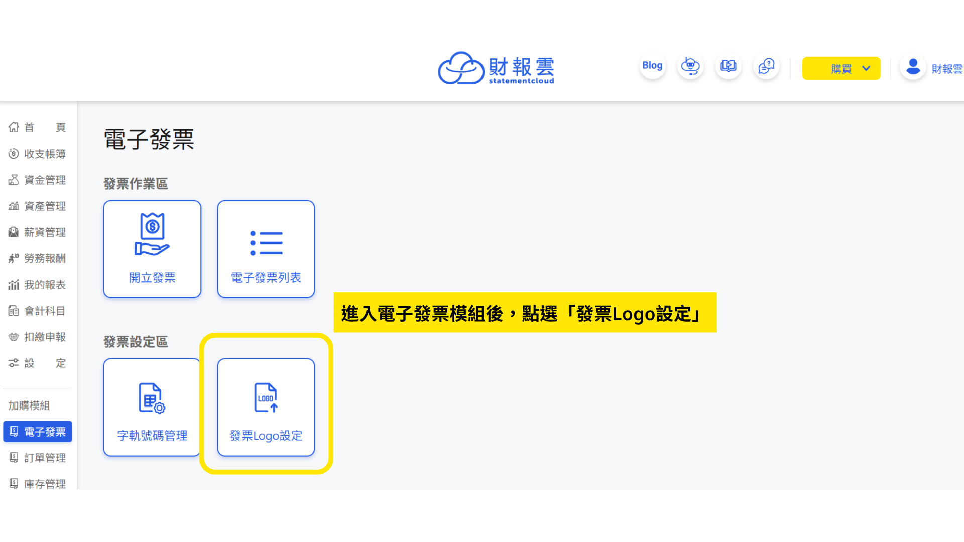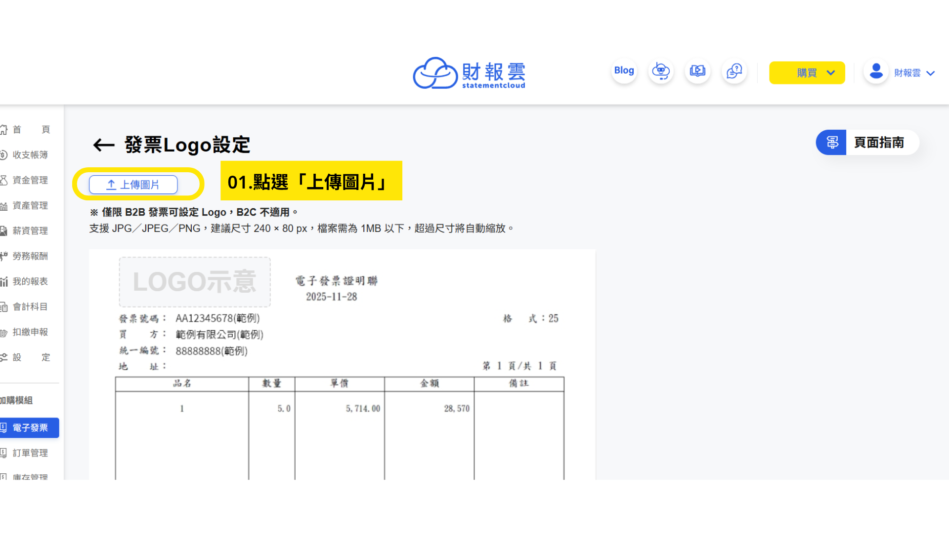 財報雲支援在電子發票上顯示公司 Logo,讓發票更具品牌識別。