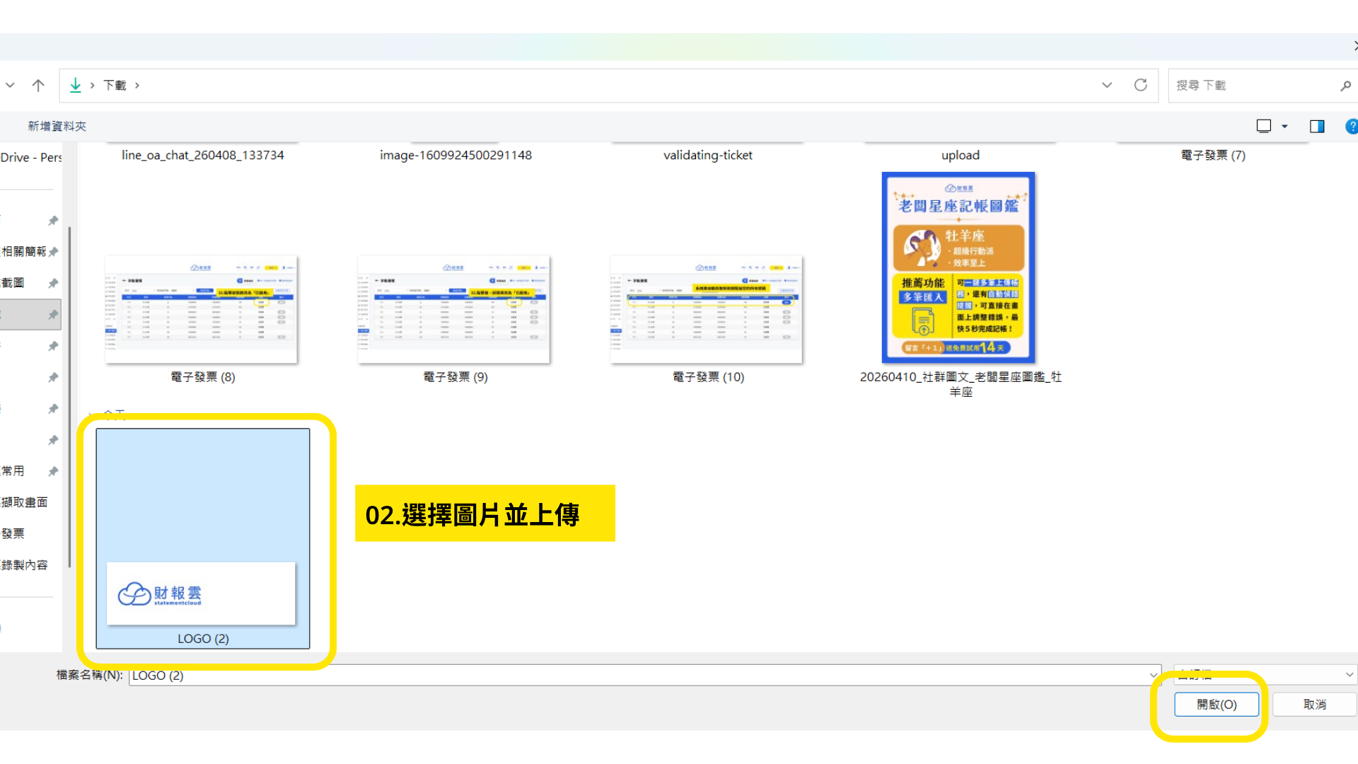選擇符合規範的 Logo 圖檔後,上傳至系統。