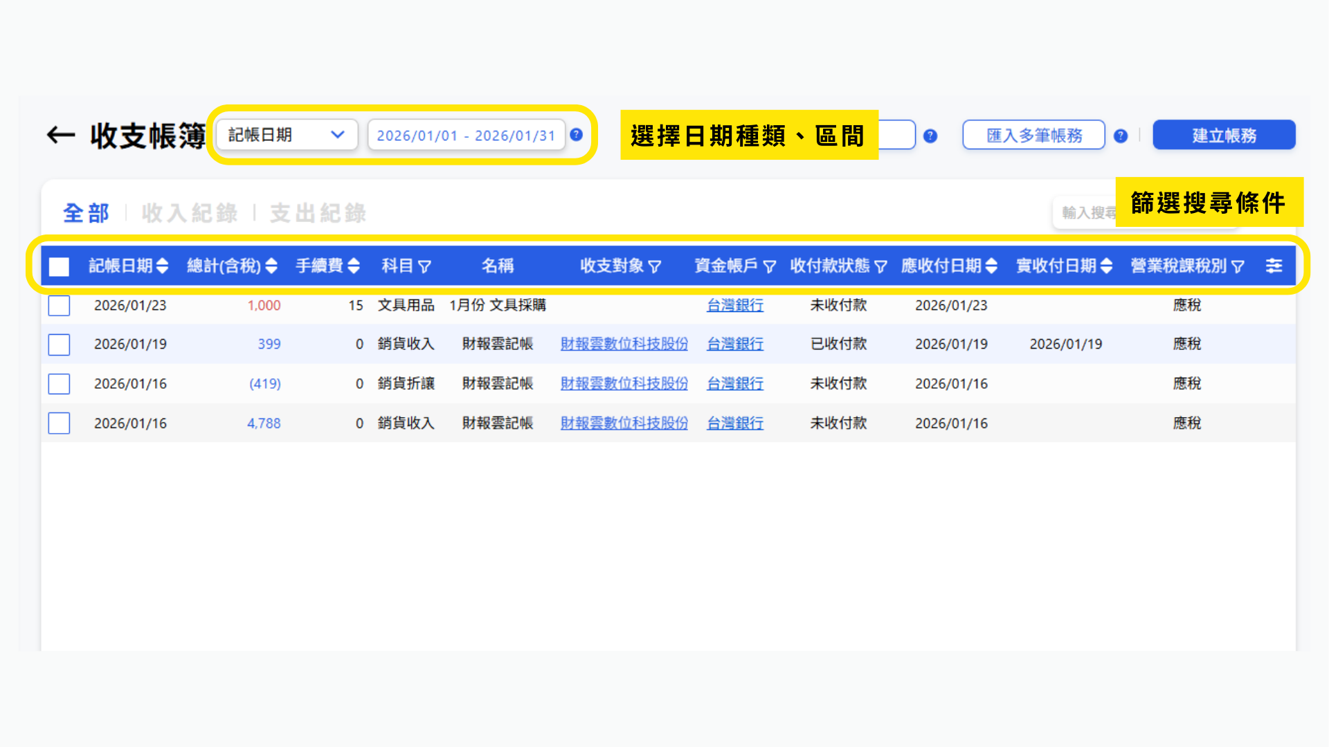 如何設定收支紀錄篩選條件?▶▶▶收支紀錄欄位與篩選功能使用指南
