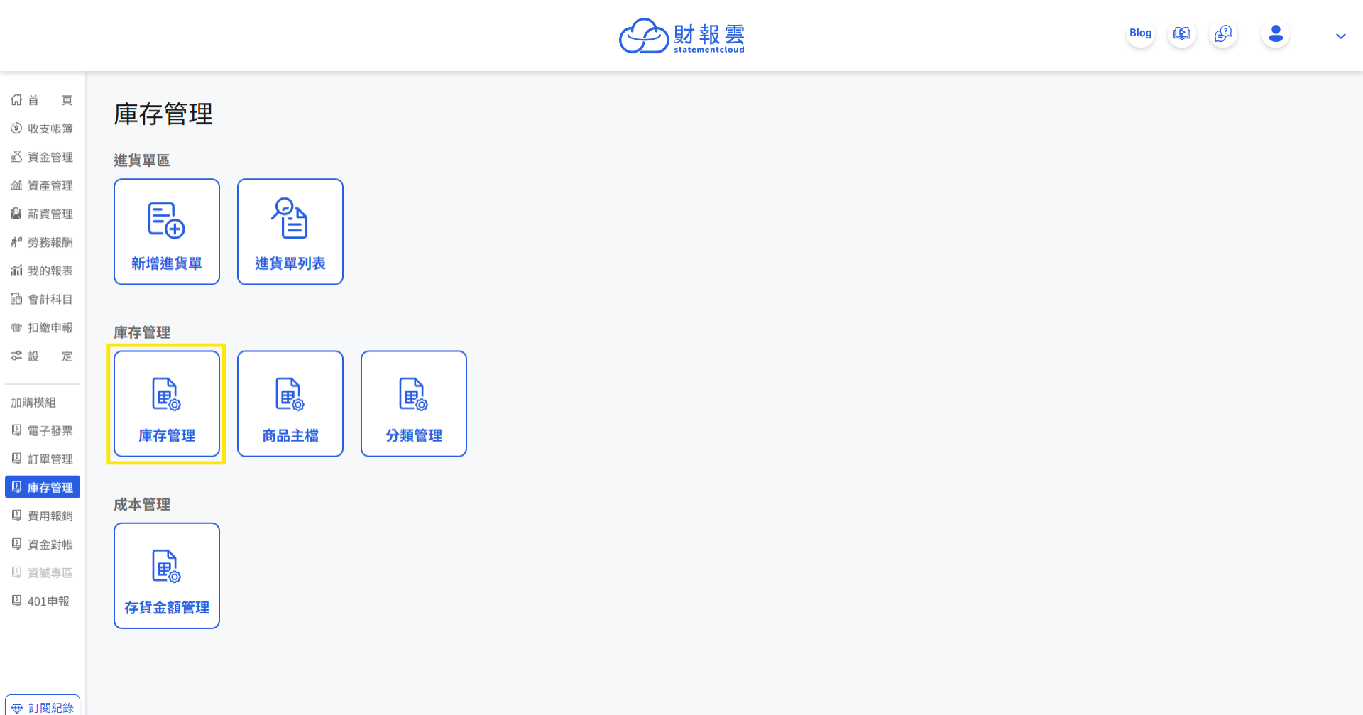 從財報雲建立進貨單,到成立訂單、商品賣出,庫存一進一出的狀況會在這裡作呈現,也能當作是庫存盤點的重要依據,來確保盤點的數量與帳上是正確的。